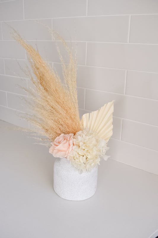 Dried flower arrangements have been a new exciting passion, even though it has been over 4 years, it is always exciting creating new and funky stylish design. I enjoy arrangements with vibrant, explosive colours however will always love nude subtle tones. I do believe you can have the best of both worlds!